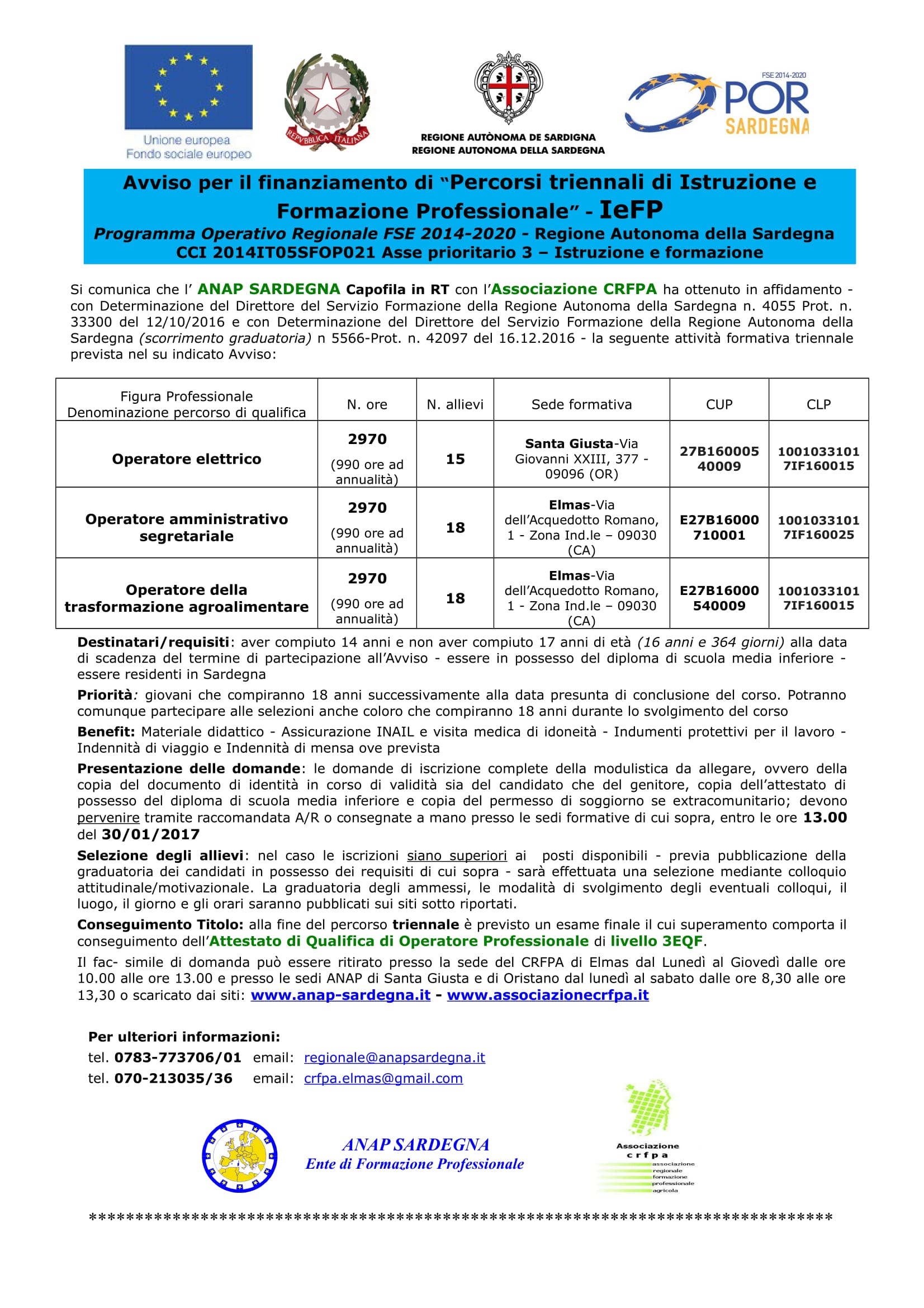 Determinazione N 42032- 4477 Del 17.11.2017 Avviso IeFP